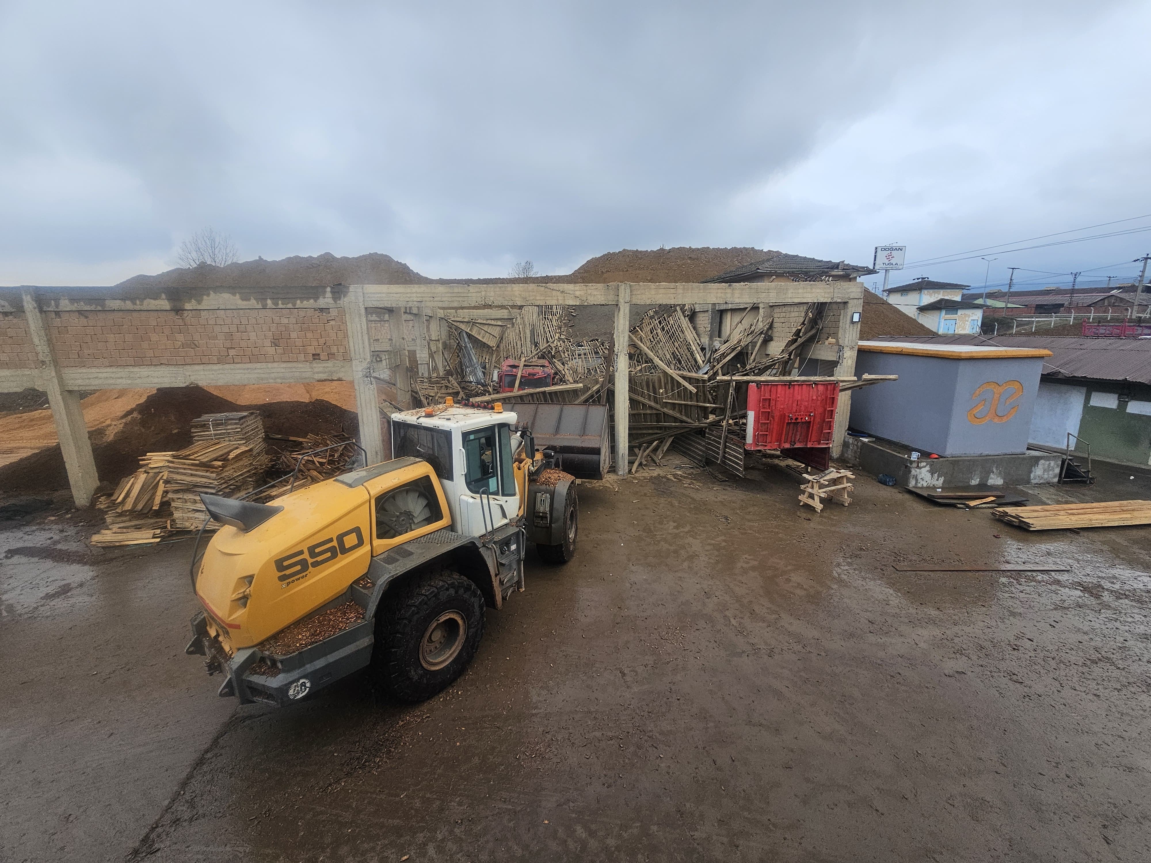 Tokat’ın Erbaa ilçesine bağlı Erek Mahallesi Recep Tayyip Erdoğan Bulvarı yakınlarında bulunan bir parke fabrikasında kamyonlarının park edildiği garajın çatısı bilinmeyen sebeple çöktü.
